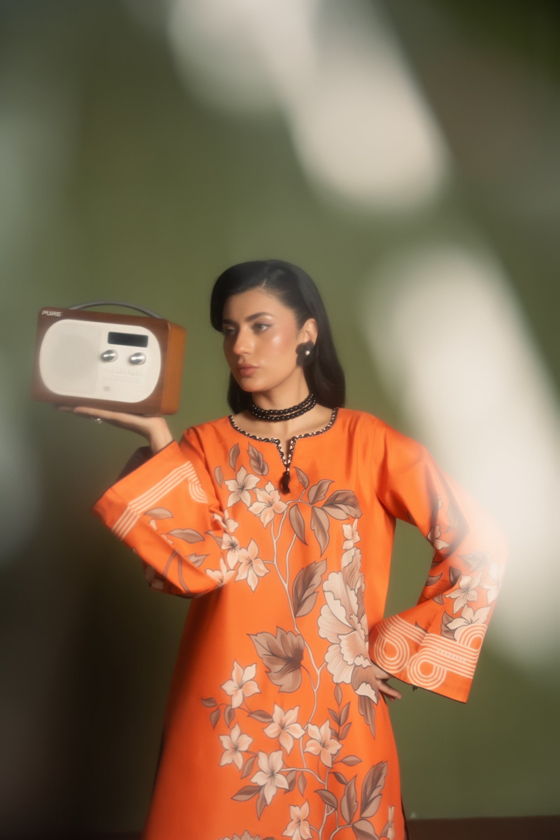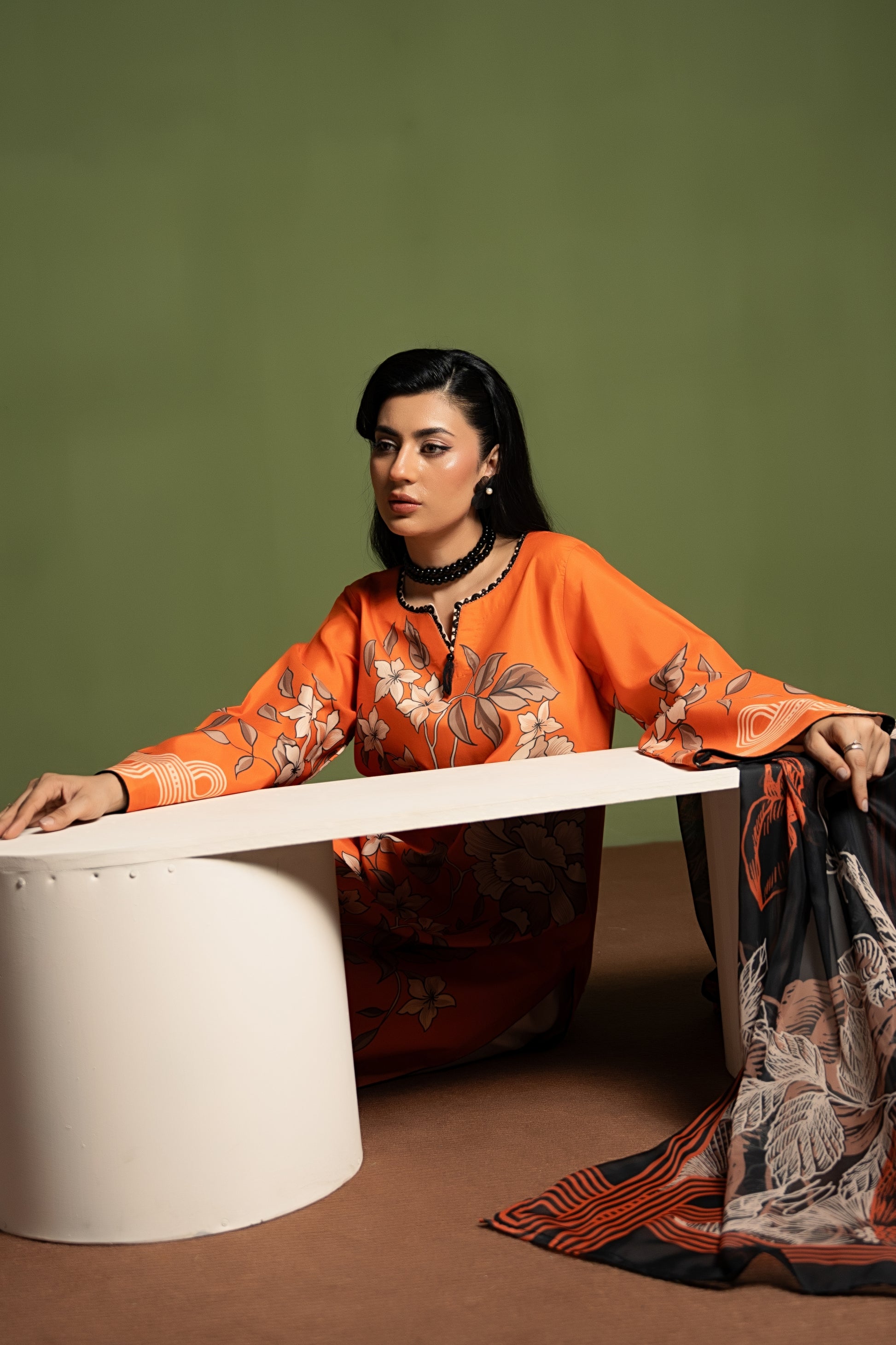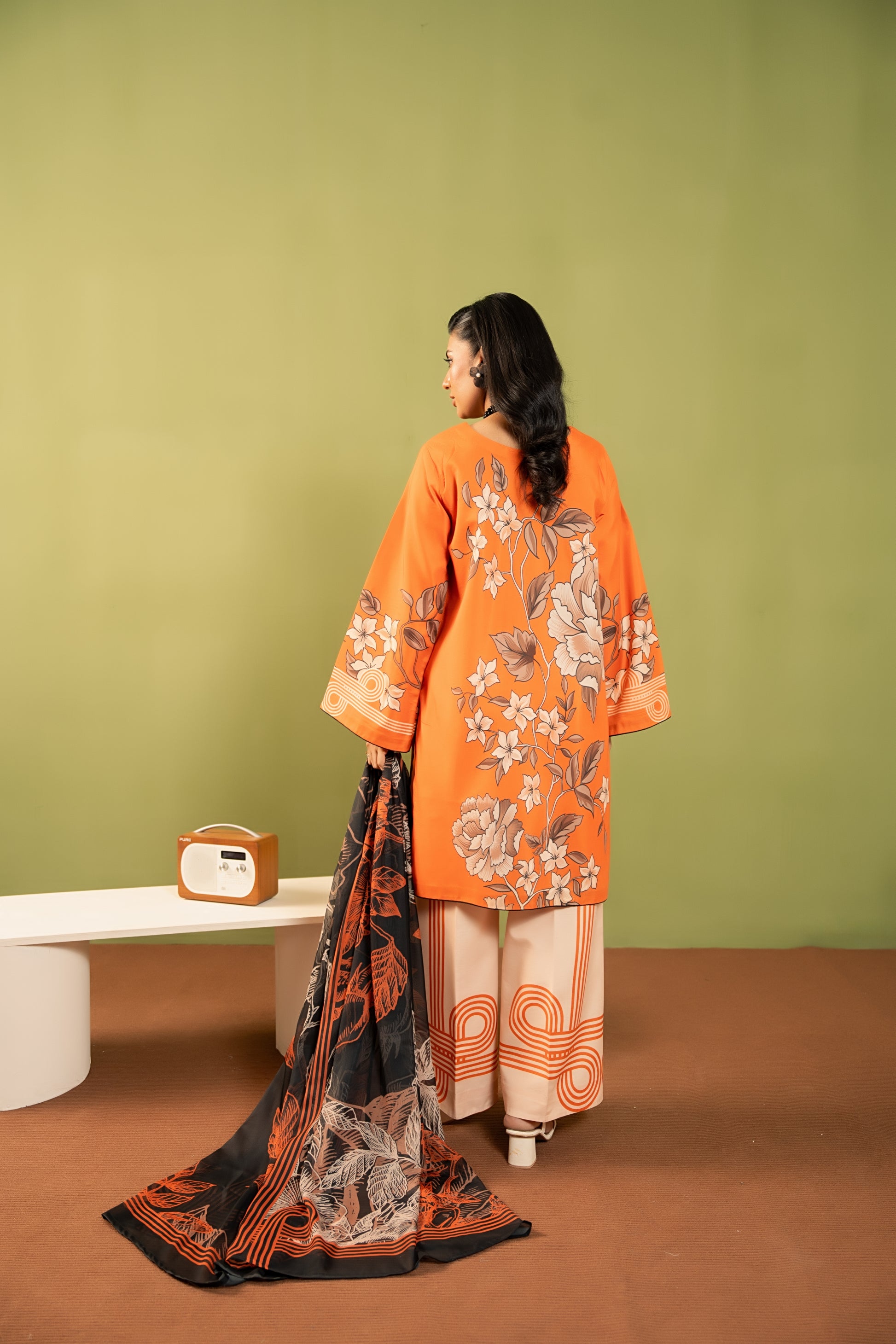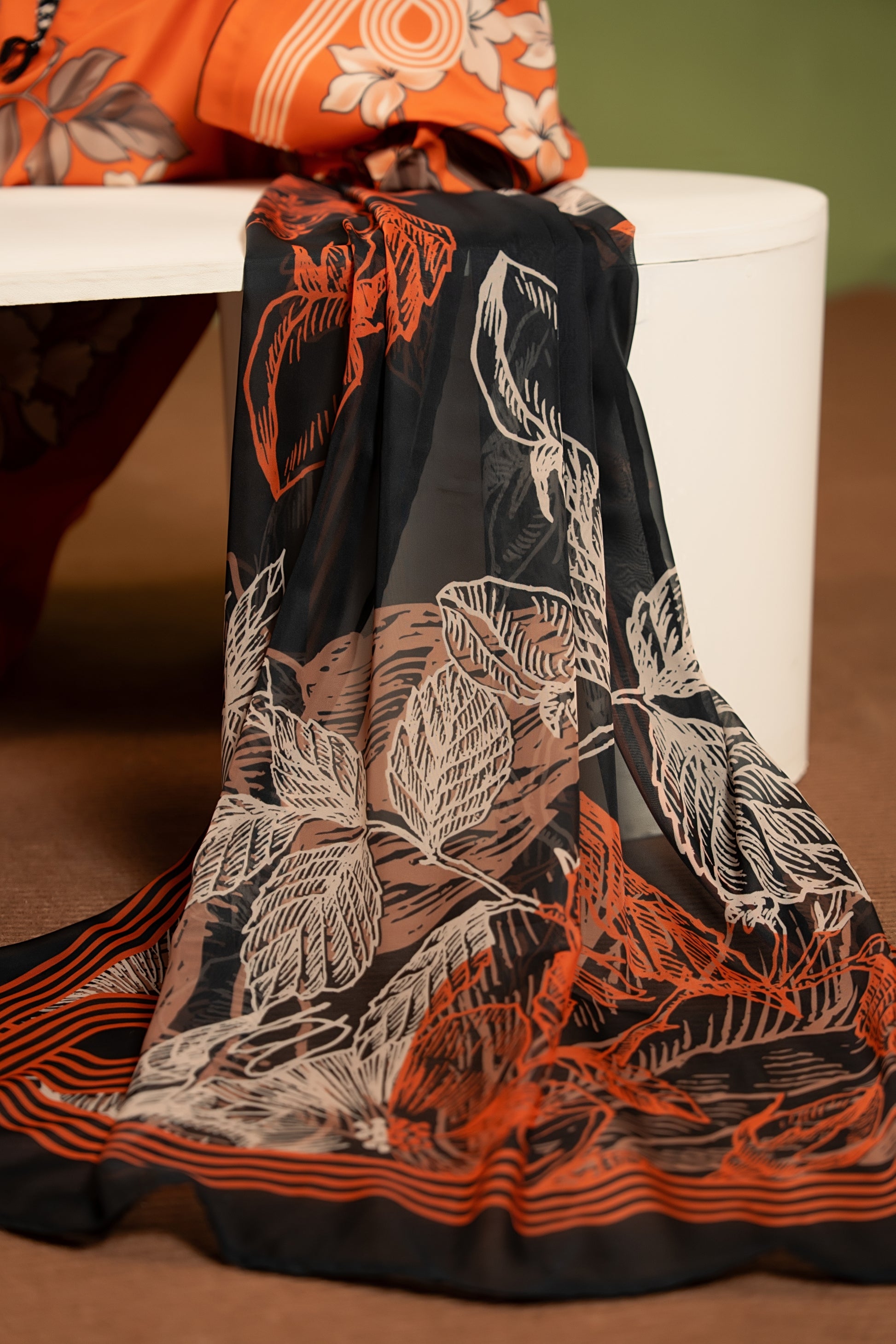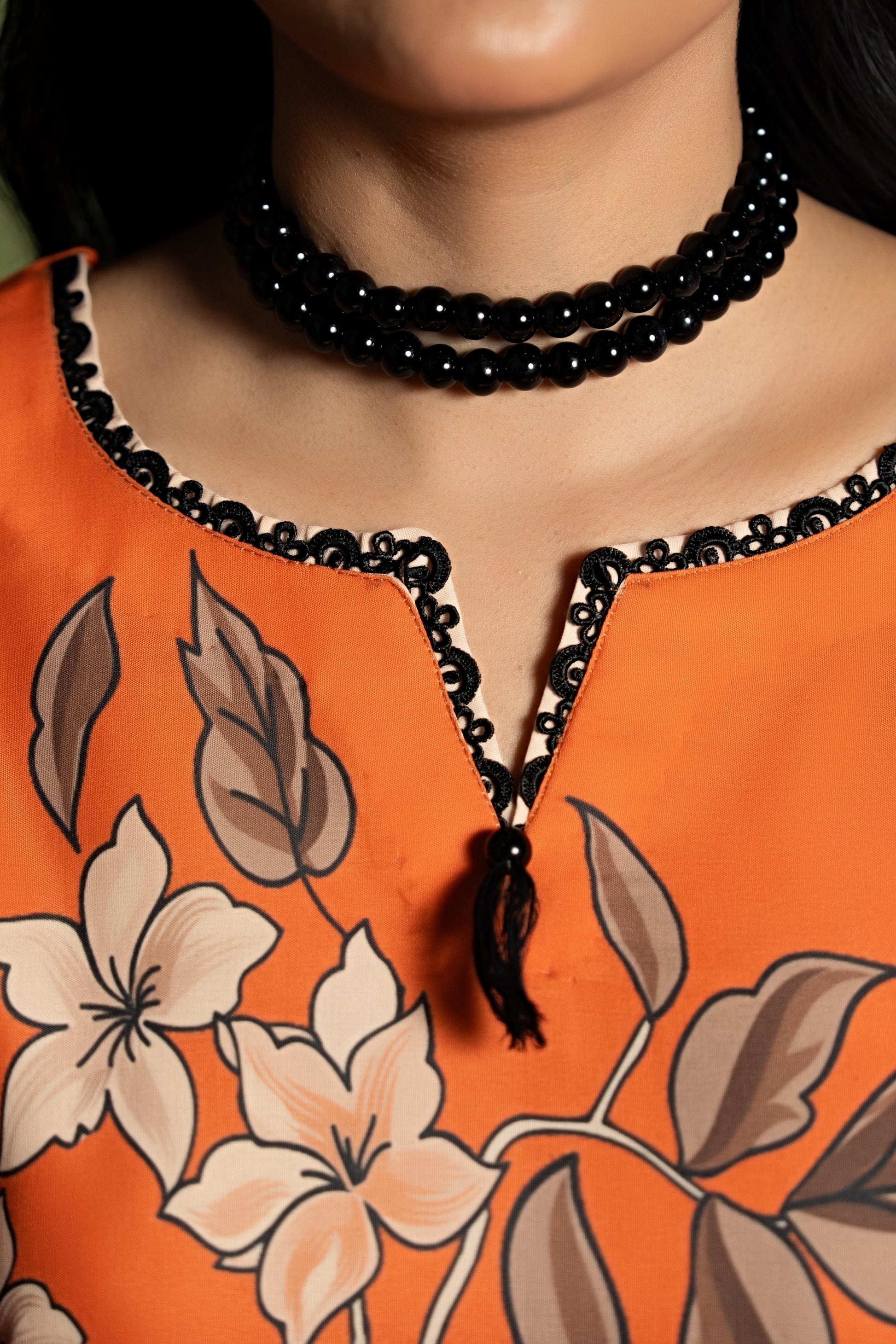 • Color: Amber Orange with Floral & Geometric Print